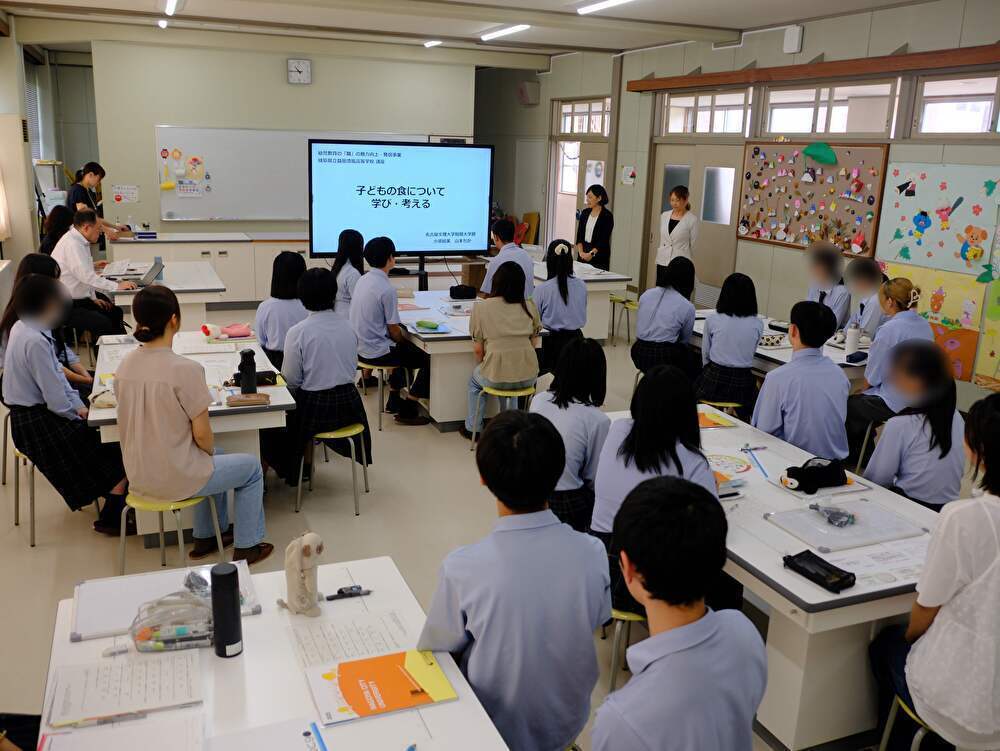 名古屋市立大学人文社会学部心理教育学科1年生・3年生・人間文化研究科院生と、岐阜県立益田清風高等学校に赴き、子どもと食のワークショップ・大量調理の講座を高校生とともに受けました。名古屋文理大学短期大学部の小濱絵美先生・山本ちか先生と学生さんによる授業、大阪教育大学の戸田有一先生によるまとめ、グループワークで高校生と大学生の交流を通じて、幼児教育職と食・栄養を担う職の連携について理解を深めました。